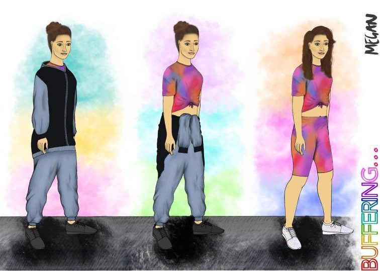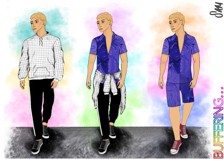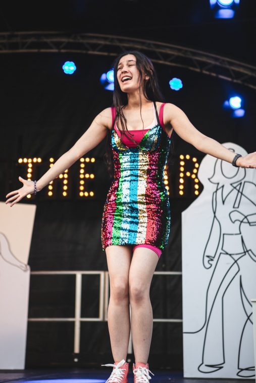 The show’s storyline followed an arc from initial panic felt during the first lockdown and staying at home, to the repetitive media circus we were all trapped within, to the eventual spark of joy when we were all allowed to spend time together again. These feelings were reflected in the costumes throughout – at the start the clothing was comfortable but devoid of any colour or sense of purpose, other than clothing our characters, which transformed in the eventual big reveal of bright, sparkling, whirlwind of colours that represented the rejoicing in reconnection and the togetherness we could finally experience again in real life.