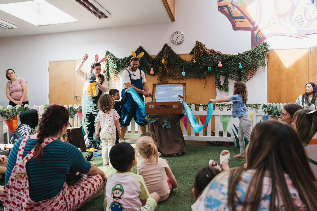 The Easter Bunny’s Party was a free, accessible children’s event in Kempston, Bedfordshire, aimed at babies and toddlers aged 0-5 featuring arts, crafts, puppetry, soft play, and storytelling, culminating in a party with the Easter Bunny themselves. Performing 4 times across 2 days, the aim of the project was to celebrate Easter during the half term holidays, and engage with new families and bring them to locations they may not typically frequent in their local area.