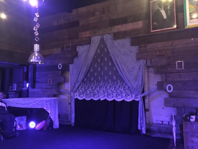 This design was site-responsive, set inside a jazz bar in Luton where the audience were seated in and amongst the performance space.
