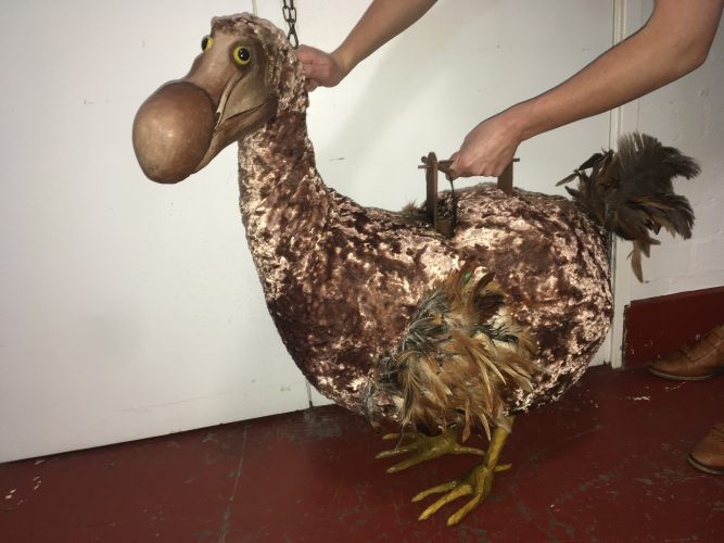 Working alongside Darren East, I designed and built the mechanics of a Dodo puppet, foam carving/sculpting and painting the face, sculpting the feet and creating the final finish of the puppet with fabric, feathers, and paint.