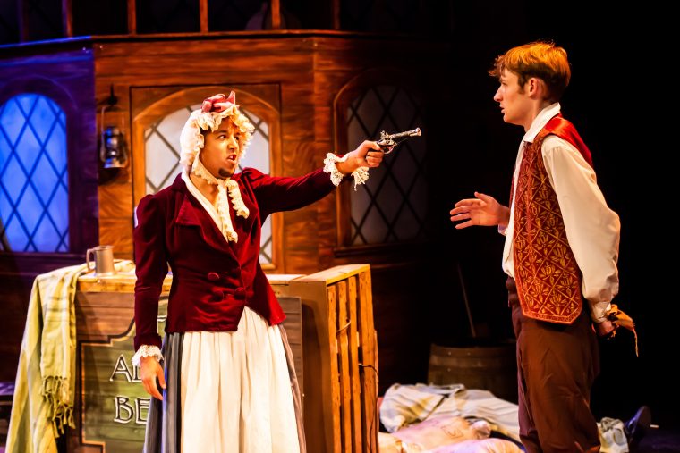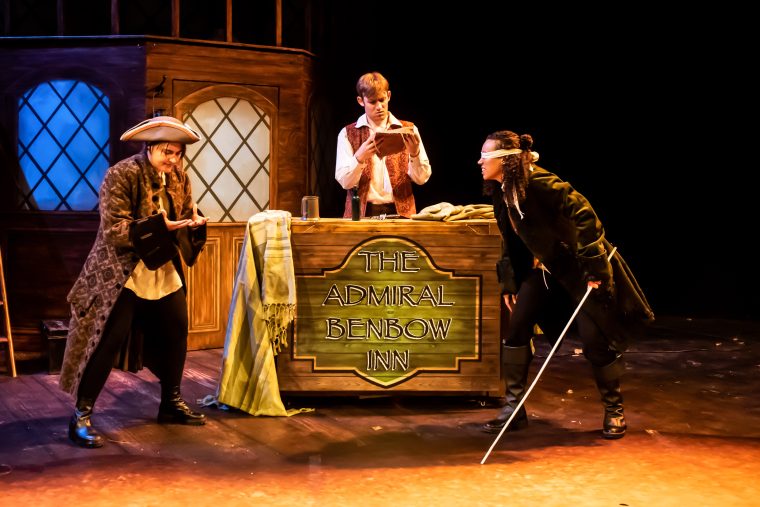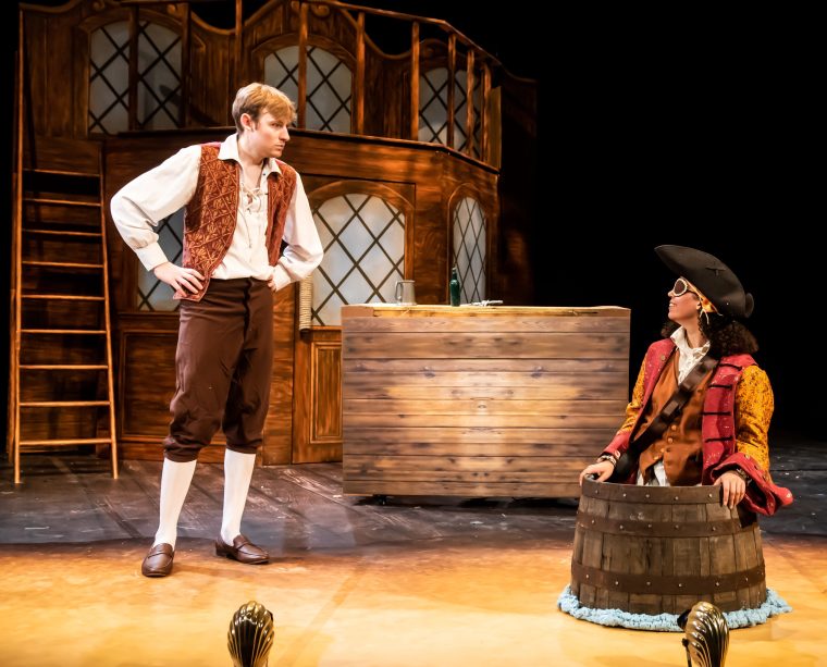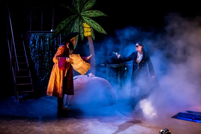 ‘the utility set … with subtle but clever dressing changes to transport us between a bar, at the docks, on board the ship, and on the island… Lauren Connolly was the designer – and an excellent job she did.’